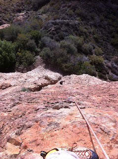 Sometime after the New Year I made it out to a local crag for some amateur rock climbing. I've been gaining some chops in the indoor rock gym near our home for a while and enjoy getting outdoors to climb occasionally. These mountains are part of the larger Santa Monica Mountain complex and are relatively close and accessible. The views are decent and the quality of climbing adequate. At most you can only get up about 150 feet then you have to rappel down. An added bonus is that I need to go to REI (sporting goods store) to purchase gear to do the aforementioned climbing... and... near REI is a very good Korean restaurant that lets you steal their food for practically nothing. Normally I order some meat and we use the inset BBQ and cook it up with veggies, throw it on rice and consume it with pickled and spicy sides. This time though I went with the bibimbop.
